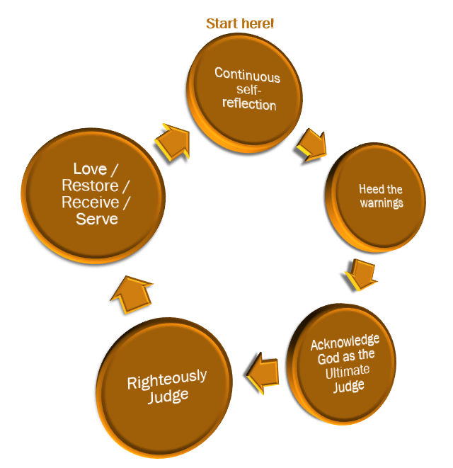 Hence, before we judge, self-reflection is required. As Jesus has pointed out to the accusers of the adulteress “He who is without sin among you, let him throw a stone at her first.” (John 8:7) [Deut 17:7 -The hands of the witnesses shall be the first against him to put him to death, and afterward the hands of all the people. So you shall put away the evil from among you. (NKJV)]